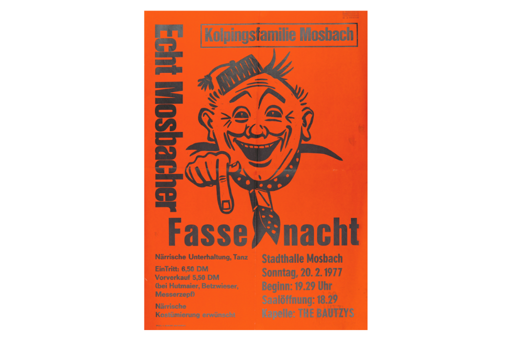 Beispielexponat Fastnacht 1977: Schon damals spielten die Bautzys als Band auf. ©Stadtmuseum Mosbach