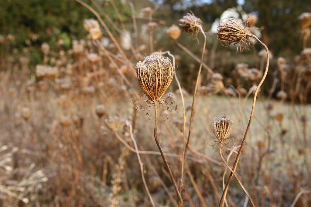 Unaufgeräumter Garten nützt Natur und Umwelt: Struppige Pflanzen bieten im Winter Wildbienen, Schmetterlingen und anderen Tieren Nahrung, Schutz und Nistplätze.