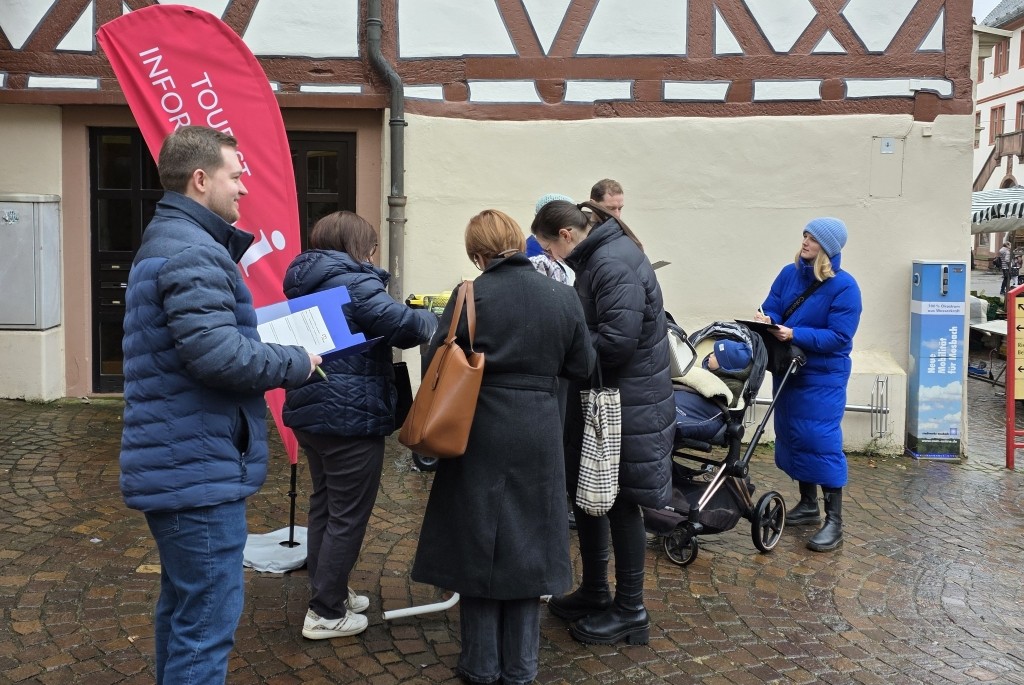 Der Wochenmarkt auf dem Marktplatz bot am Mittwoch, den 14. Januar ab 11 Uhr den Rahmen für eine Befragung im Rahmen des Arbeitskreises „Strategie Innenstadt“. Neben der persönlichen Vor-Ort-Befragung durch Vertreter des Arbeitskreises Innenstadt wie OB Julian Stipp und Innenstadtkümmerer Christian Polland, besteht auch die Möglichkeit, sich online an der Befragung zu beteiligen.